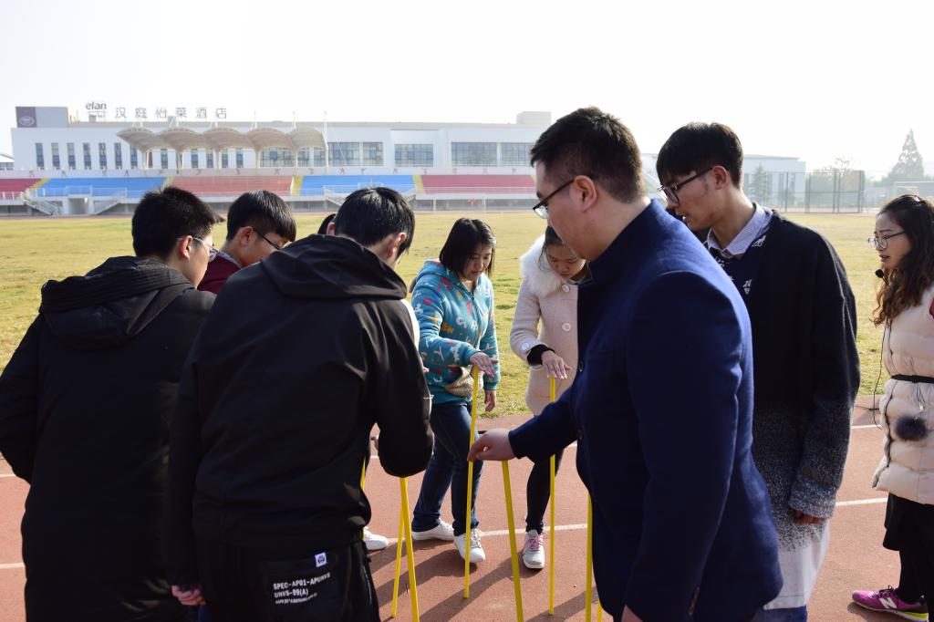 活动中开展了“认识你很高兴”、“万花筒”、“心有灵犀”,“齐心合力”,“珍珠远行”等以破冰、协作、竞争为主题的拓展活动。活动过程中欢声笑语,掌声不断,学生们在老师的带领与鼓励下,团结合作,齐心协力完成了一个又一个的项目挑战。