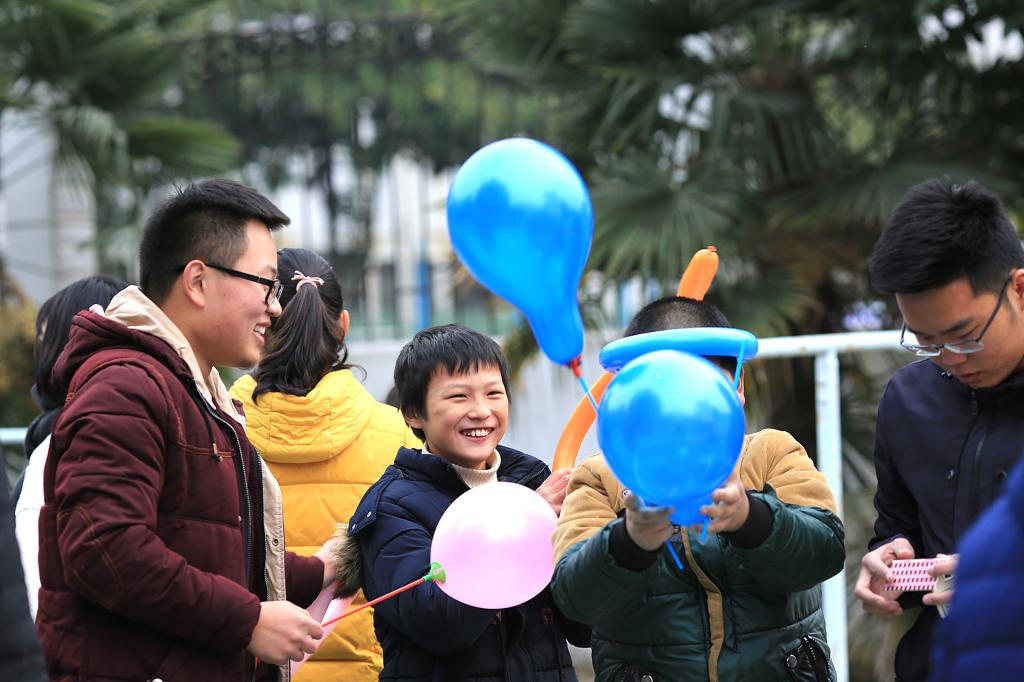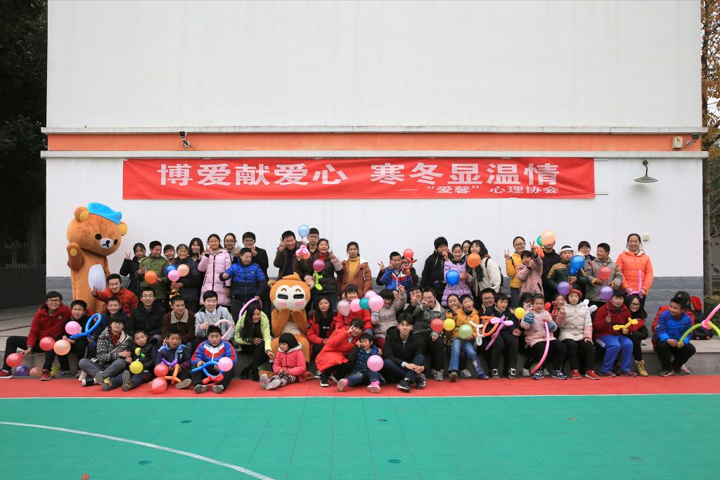“爱馨”心理协会一年一度的“走进博爱”活动于12月6日下午在句容市博爱学校操场举行。今年的活动主题是“博爱献爱心,寒冬显温情”,“爱馨”心理协会40名成员和博爱学校35名小朋友共同参与了此次活动。