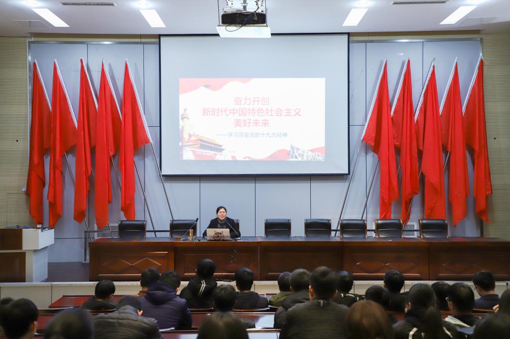 12月8日,信息工程学院学生党支部邀请校思政部张媛老师开展“奋力开创新时代中国特色社会主义美好未来—深入学习贯彻党的十九大精神”主题讲座。张媛老师围绕十九大鲜明主题、习近平新时代中国特色社会主义思想的丰富内涵等内容,系统阐释和深入解读党的十九大提出的新论断、新思想、新目标、新要求等方面的内容。张媛老师鼓励大学生找准学习成长的时代坐标,不忘初心,砥砺前行。