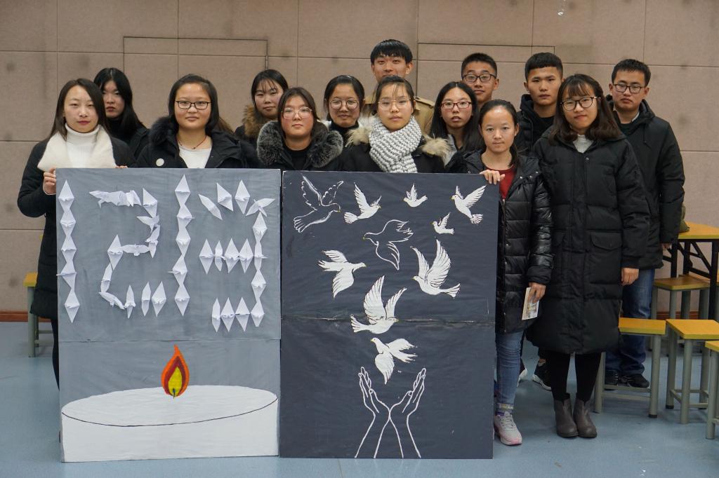 2017年12月13日是南京大屠杀80周年纪念日,为进一步加强大学生爱国主义教育,牢记历史、勿忘国耻,增强社会责任感和使命感,12月12日,风景园林学院青年志愿者协会在研发楼翻转课堂举办了“民族之殇,祭之以国”纪念活动。