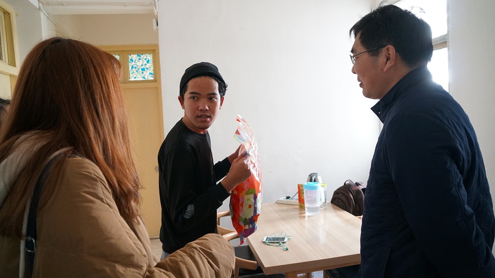 2月12日上午,学院副院长曹仁勇、办公室主任毕德全来到留学生公寓看望慰问春节期间留校的留学生,为他们送上学校的关怀和新春祝福。