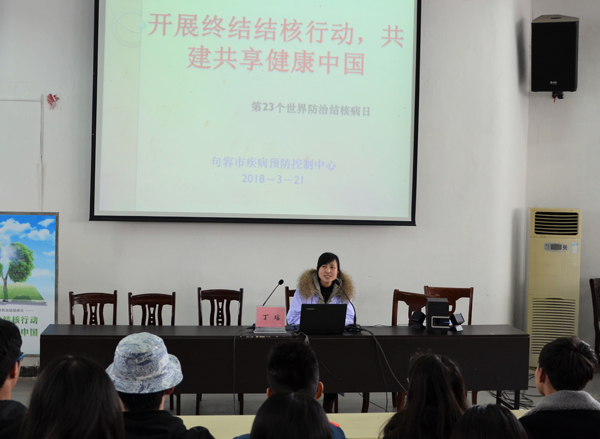 为响应省教育厅发布的关于《师生健康 中国健康》系列活动的号召,切实保障广大师生的身体健康,有效防范学校结核病传播流行,在3月24日“世界防治结核病日”来临之际,茅山校区、学院后勤管理与服务中心联合句容市疾控中心专家团队,于3月21日,在校区学术报告厅举办《大学校园如何防控结核病》专题讲座,讲座由市疾控中心的结核病防治专家丁瑶医师主讲,校区300余名师生参加了讲座。