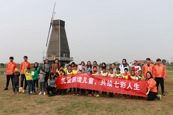 3月25日上午,经济与人文学院“蒲公英”关爱儿童团的志愿者联合信息工程学院“E信锋行”社团的志愿者来到岩藤农场与22名留守儿童共同参加户外拓展。
