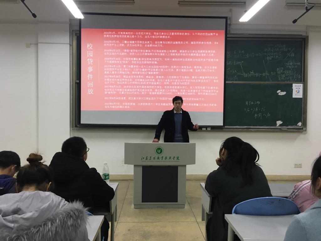 在学习会上,通过回顾近三年来涉及“校园贷”的主要事件,加深了同学们对“校园贷”及的了解,使学生识别“校园贷”基本业务分类和常见收费项目,更加深刻的认识“校园贷”的危害,并从树立正确的消费观、提高对金融诈骗和不良借贷的防范意识、注意维护自己的合法权益等几方面防范“校园贷”。学习之后,签定“校园贷”风险告知书。