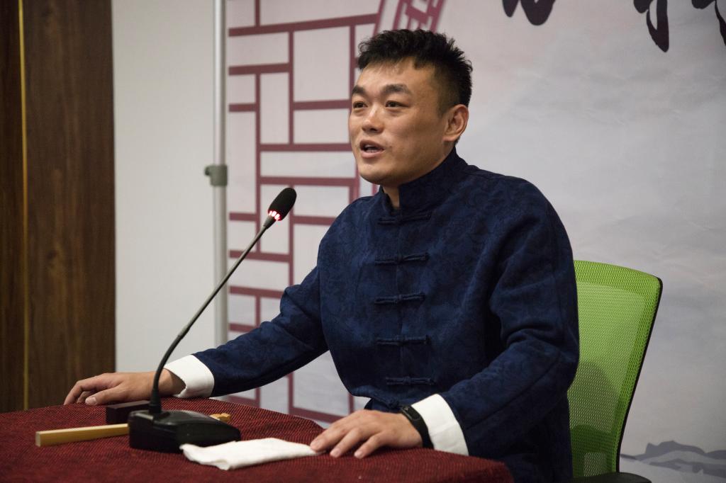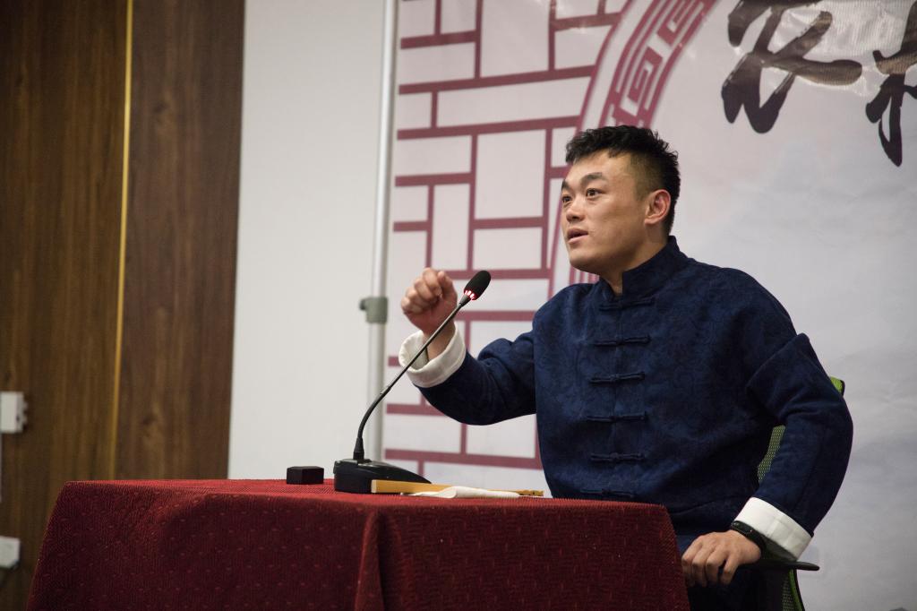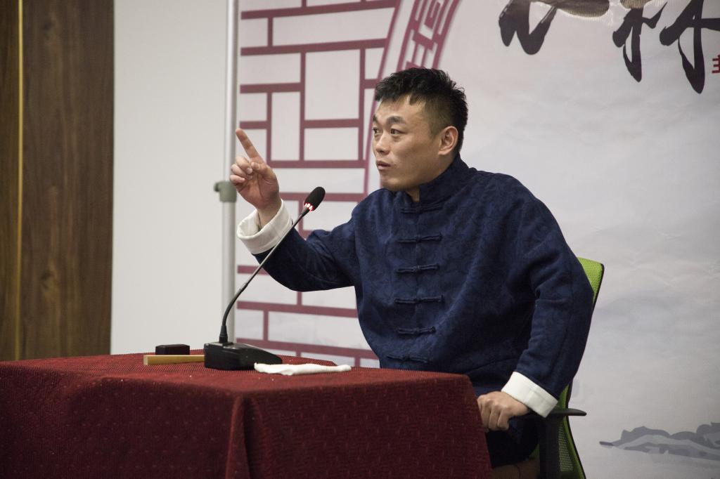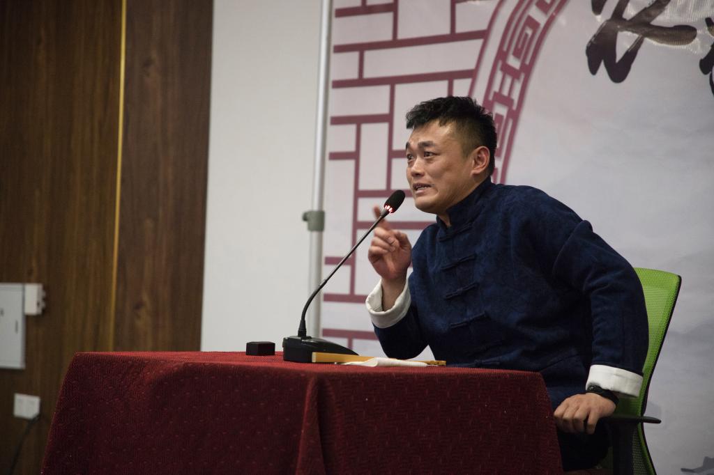 演出开始,傅老师从评书历史娓娓道来,突然醒木一拍、折扇一打,故事就从仁医毛大福讲起。表演过程中傅老师的评书如珠落玉盘,高潮迭起,让喜爱曲艺的同学们一饱耳福。