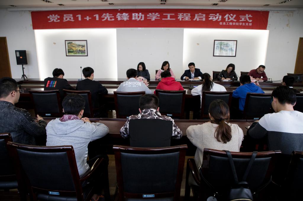 为深入学习十九大精神和习近平总书记系列重要讲话精神。3月28日14:00,信息工程学院学生党支部在中层干部会议室举行党员1+1党的理论知识助学工程启动仪式。支部所有党员和入党积极分子、发展对象参加了启动仪式。