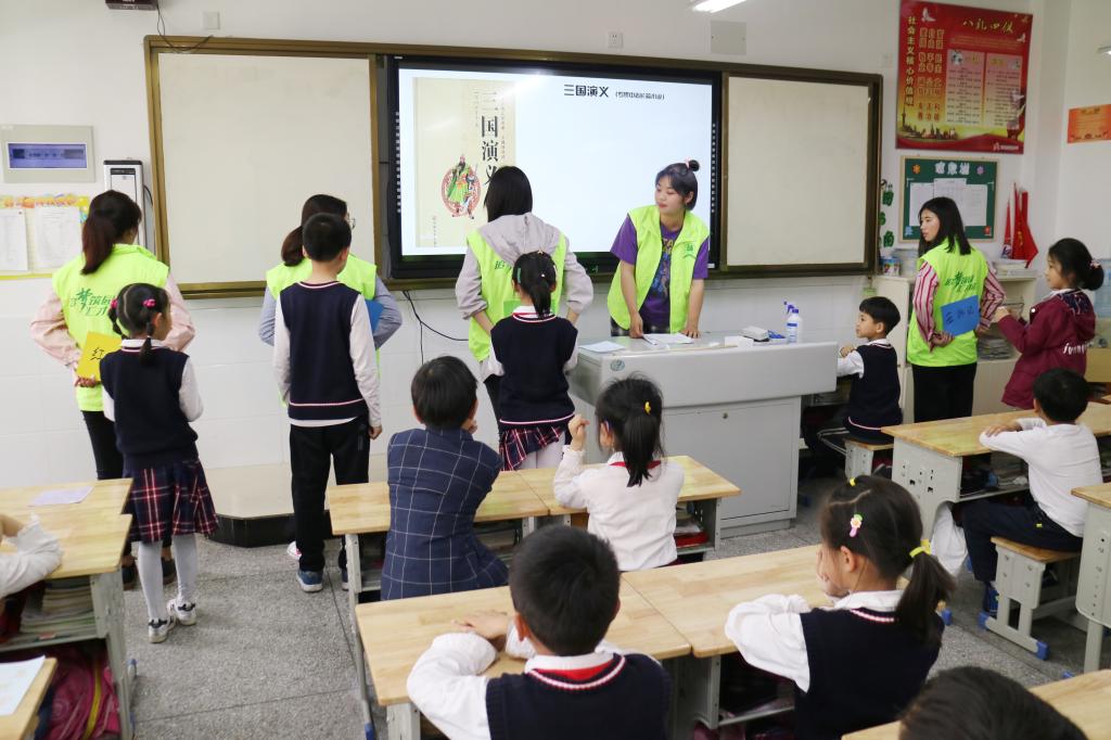 4月2日下午,风景园林学院和句容市图书馆的志愿者们来到句容市实验小学,通过“科普爱书小妙招”、“名著连连看”、“猜字谜”等游戏环节检验了小学生们的阅读成果,有效的激发了大家阅读的热情和兴趣。