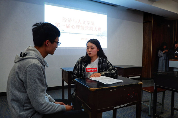 4月18日晚,经济与人文学院首届校园心理情景剧大赛在创客空间207教室隆重举行。同学们将当下大学生常见的校园贷、人际交往障碍、青春期叛逆等问题,以情景剧的形式搬上舞台,通过舞台表演引发更多的学生关注心理健康,营造积极健康的学习生活氛围。评委和到场的同学们充分肯定了心理情景剧反映现实生活、关爱内心世界的价值与意义。