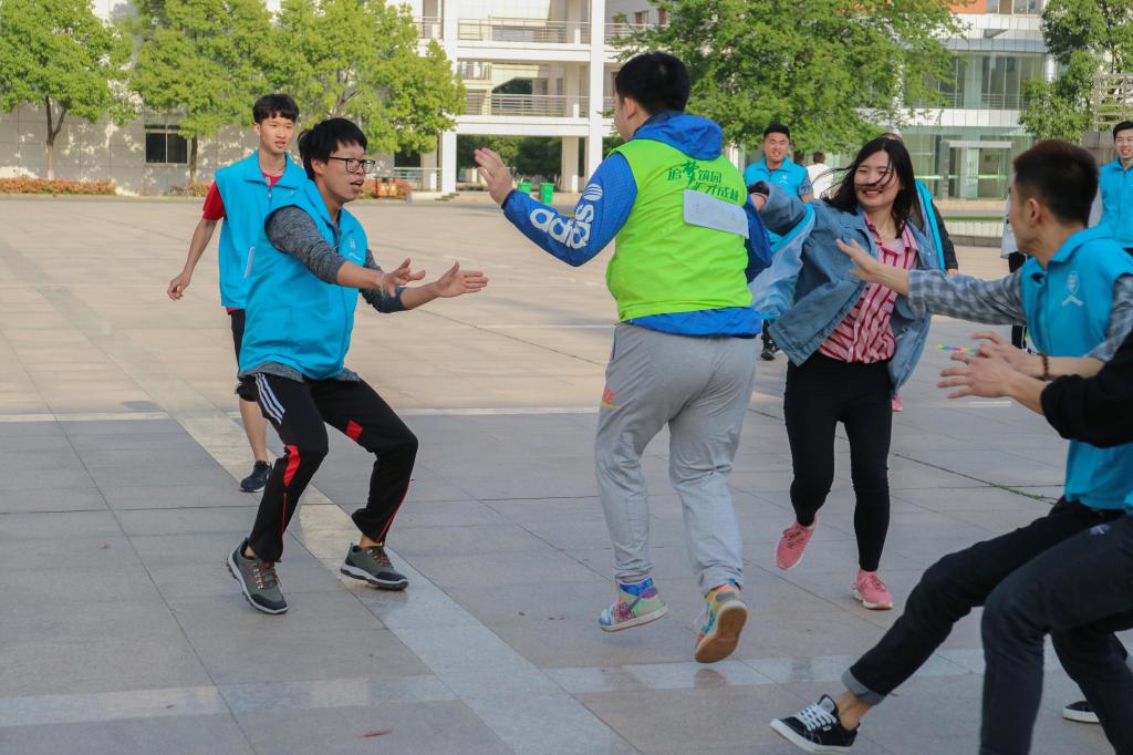 志愿者们首先在南校区进行校园环境清理工作,分组展开热火朝天的劳动竞赛,不放过任何一个卫生死角。随后开展了名牌大战游戏活动,大家将废旧电池、土地荒漠化、开车出行等不环保行为和节约用电、高效种树、低碳出行等环保的行为分为两组写在名牌上,大家斗智斗勇,充分发挥自己的优势,最终环保组取得了压倒性胜利!