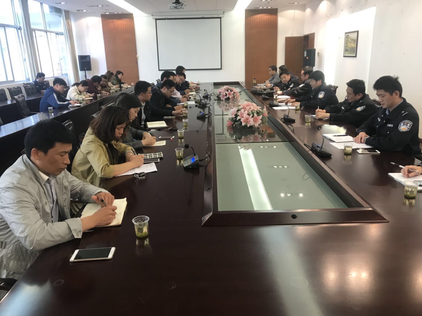 4月19日下午,句容市公安局一行8人来FUN官网调研,学院相关职能部门和安全保卫处全体人员参加了调研会。