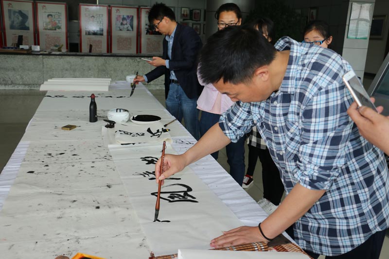 5月12日上午,由学院图书馆主办的“书香墨韵-校园书画比赛、展览暨书画爱好者笔会”现场部分在图书馆二楼大厅隆重举行。来自学院约50余名师生书画爱好者及镇江市书画名家参加笔会活动。