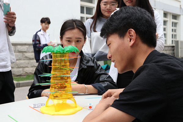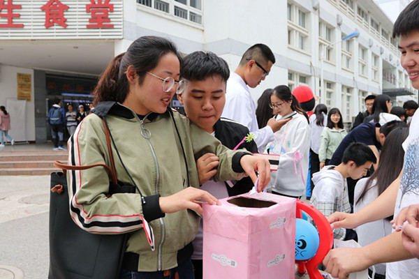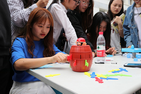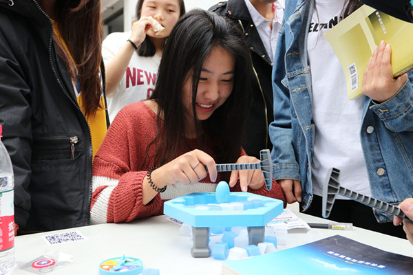 活动现场,同学们先要关注“我的白米饭”微信公众号,然后参加“拯救企鹅”、“海盗桶”、“88轨道”、“青蛙吃豆”、“猴子上树”、“整人鳄鱼”、“迷你保龄球”等抖音热门游戏,赢者即可获得一次抽奖机会,赢取丰富奖品。活动吸引了众多学子留步,进一步推广了“我的白米饭”校园平台,为今后实际运行打好基础。