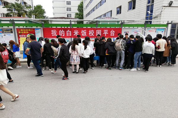 学生会的学生干部们在食堂门口展示了各种机器人模型,组织了横幅签名,来往学生在“拒做低头族 把时间留给爱的人”横幅上郑重签名,并承诺不做“低头族”,走出“虚拟”,珍惜自己与爱的人。