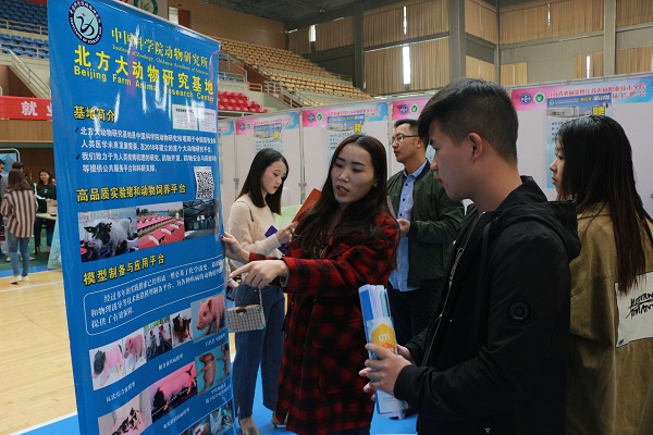 10月13日,畜牧兽医学院2018年秋季校园招聘会在校体育馆举行。本次招聘会邀请了包括新希望集团、中粮集团、光明集团、通威集团、正大集团、大北农集团、温氏集团、牧原集团、嘉吉集团、中国科学院上海生命科学神经科学研究所、南京医科大学、江苏立华牧业等国内知名企业在内的140家企事业单位到场招聘,为毕业生提供了6000多个优质工作岗位,岗位供需比高达10:1。