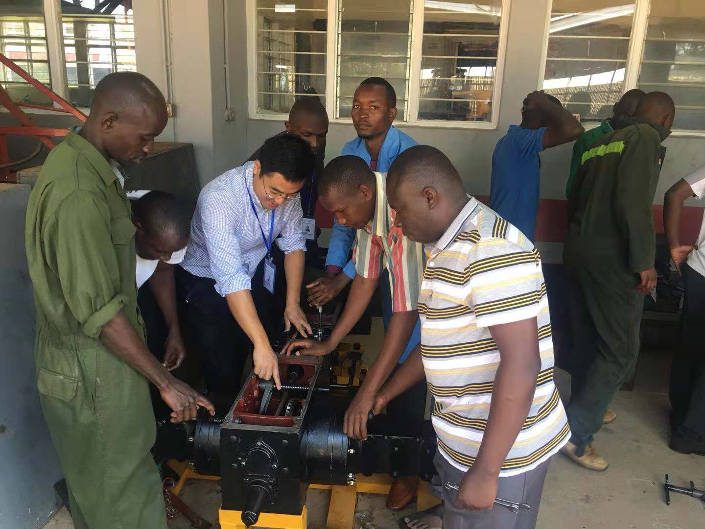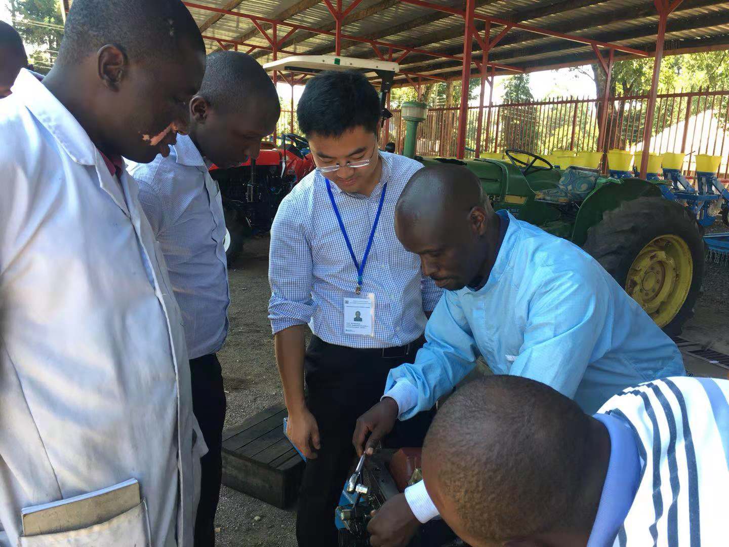 为帮助肯尼亚政府对本国大专院校的农机使用与维护专业进行升级建设,机电工程学院丁龙保、赵梦龙两位农机专家远赴肯尼亚Kitale National Polytechnic开展了柴油发动机的使用与维护、拖拉机的使用与维护、全程机械化农机作业机具的使用与维护等实地教学活动。
