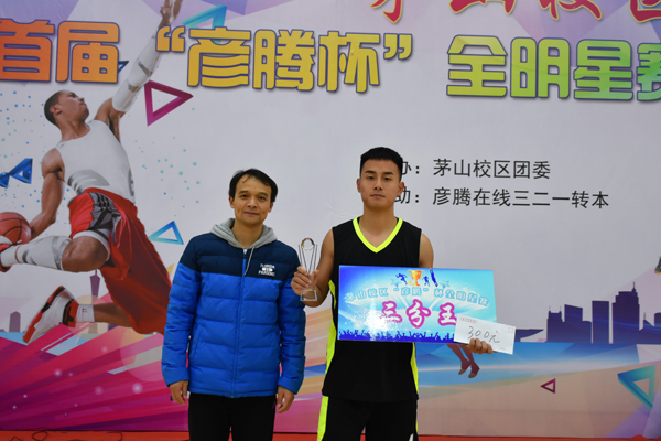 在三分王大赛环节中,参赛者要在一分钟二十秒内依次在五个投篮点上投篮,进球最多者获胜,最终,16作物生产技术班周明远夺得三分王大赛冠军。技巧挑战赛分为高手上篮、变向运球、击地传球、低手上篮、三分远投五个部分,完成整套动作时间最短者获胜,娴熟的技巧和沉稳的步伐让来自18现代农业技术班李二宾获得技巧挑战赛的冠军。在高低年级全明星对抗赛中,各代表队是由来自各个学院(校区)的代表组成,分为梦之队和龙之队,最终,梦之队以53:52比分摘得此次全明星决赛的桂冠,来自16汽车营销与服务班陈明杰获得了此次篮球全明星决赛MVP。