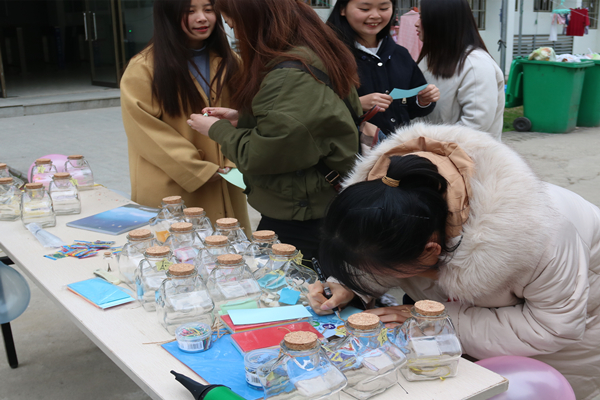 活动当天,男生志愿者们于12#楼集合,手拿前期征集的心愿瓶以及小礼物,分别于教室、食堂、女生宿舍楼下等地点,将惊喜送给每一个女生。通过男女生互动的活动形式,增进了同学间的交流和沟通,同时营造温暖和谐的校园氛围。