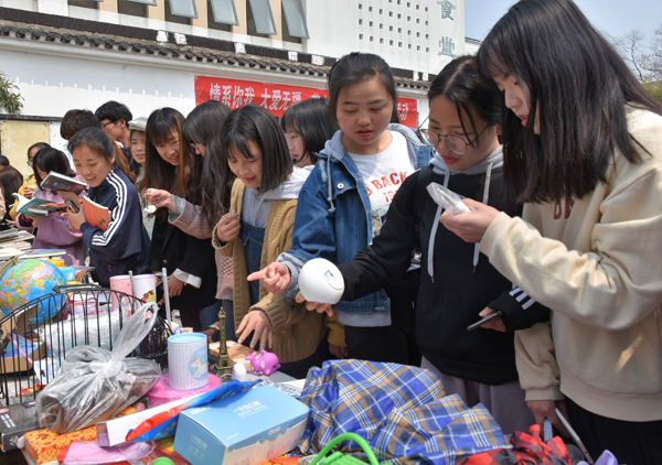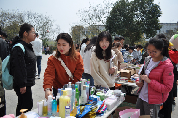 活动现场人流攒动,每个义卖点的志愿者们热情地向同学们展示着义卖的物品。长桌上摆满了书本、电子产品、衣物、花卉等各种物品,参与活动的师生络绎不绝。本次义卖共筹得资金3000多元,将全部汇入校团委的“爱心基金”,用于未来的农家书屋建设、爱心助学项目等。