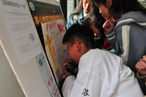 4月初,茅山校区学生党支部组织各学生公寓楼开展了思政教育进宿舍之“笔尖汇两会”活动。