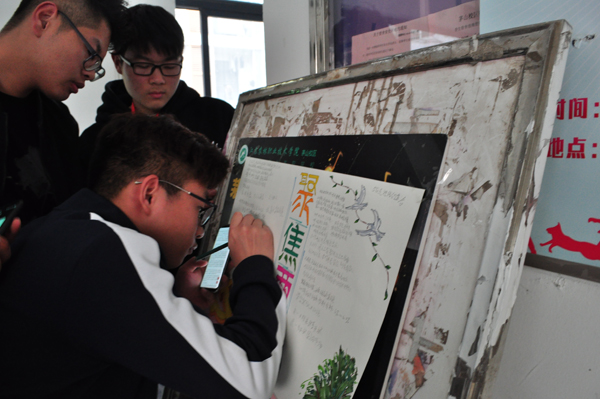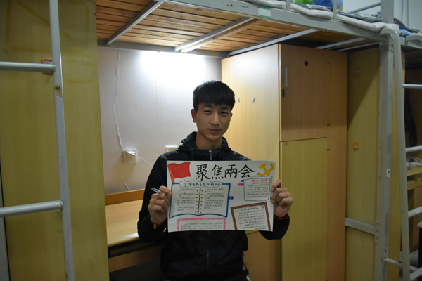 来自校区6栋公寓楼共60间宿舍参加了此次活动。活动分为“笔尖汇两会”和“党员绘两会”两个环节。前期,通过各公寓楼站长的大力宣传,共收集到150余幅两会海报作品。内容有两会基本知识、大学生创新创业政策解读,还有关于解读高职院扩招政策的解读等。来自18机电一体化1班的杨泽同学提到,今年高职院扩招100万人,是让更多的青年凭借一技之长实现人生的价值,说明现在国家越来越重视高校技能型人才的培养,他也会努力学好专业,掌握一技之长,希望能在自己的专业领域贡献出青春力量。