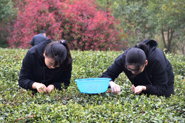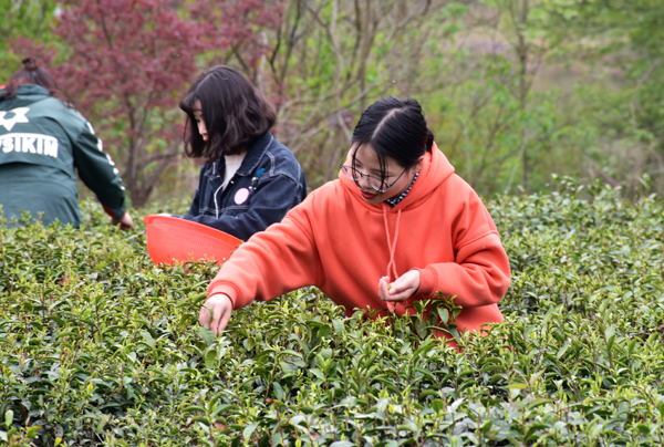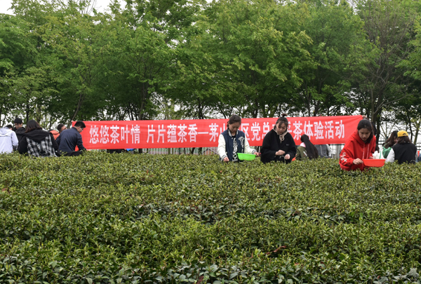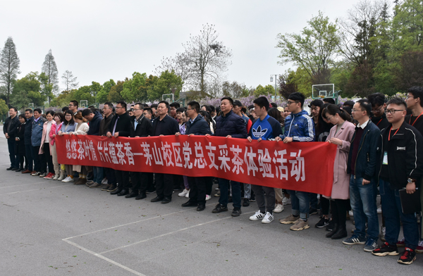 清明节后,正是采茶好时节,4月10日下午2点,茅山校区党总支开展的“悠悠茶叶情 片片蕴茶香”采茶体验活动正式拉开帷幕。此次活动将持续两周,校区党总支全体教师党员、2000余名学生参加。 校区党总支两年来一直坚持校企志愿服务对接,组织校区党员教师、学生来到江苏茶博园义务采茶,充分利用“工学结合”组织茶艺专业学生进行现场指导。活动现场,二十多名党员、上百名学生活跃在茶园里,严格按“一芽一叶”的标准采摘茶叶。女生们心灵手巧,动作轻盈,手到芽落。男生们也不甘示弱,细致而专注。