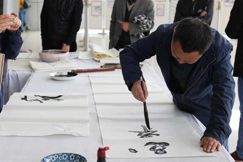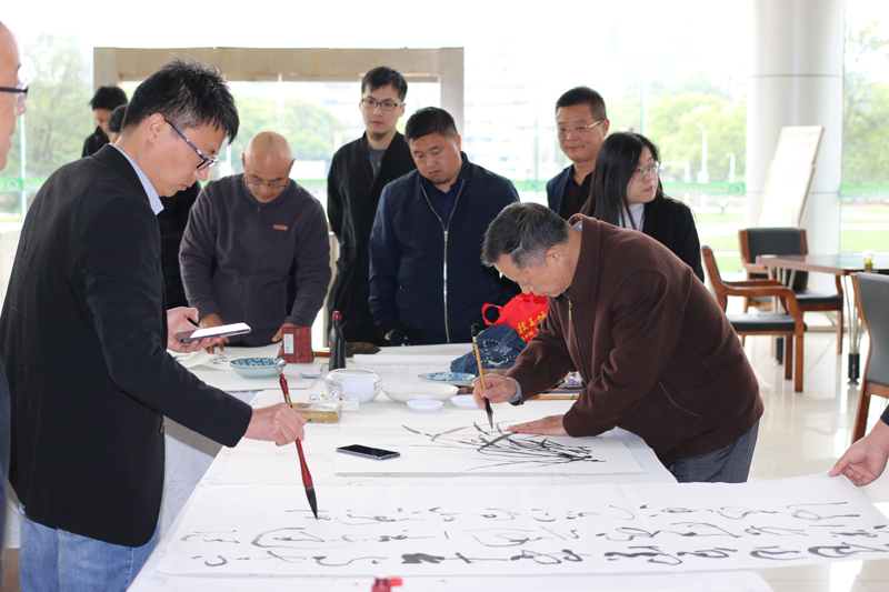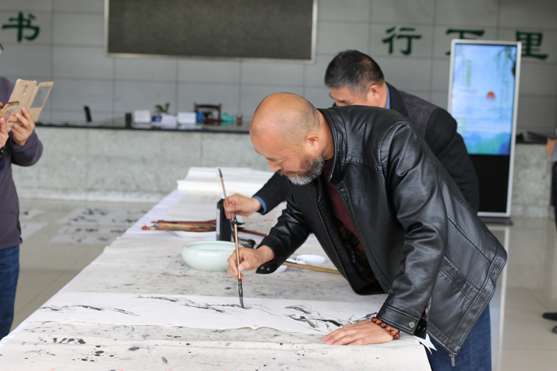 笔会活动现场,书画名家写胸臆,泼翰墨丹青于华章,化妙境,洒绿色情怀在笔端。以笔墨勾勒出诗情画意、书写出气势恢宏的文字,创作出了近四十幅佳作。书画爱好者与名家以笔会友,书画传情,切磋技艺。中国书画艺术是中华民族优秀文化的重要精粹,也是中华民族精神的典型象征,能够对大学生的美学和艺术修养的提升起到积极的推动作用。