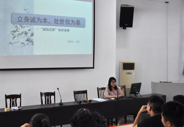 为切实做好生源地贷款学生的诚信还贷教育工作,帮助贷款学生树立诚信还贷意识,5月22日下午,茅山校区在报告厅开展了“立身诚为本,处世信为基——诚信还贷”知识讲座。此次讲座由校区学工办王庆老师主讲,校区申请生源地贷款的100余名学生参加。