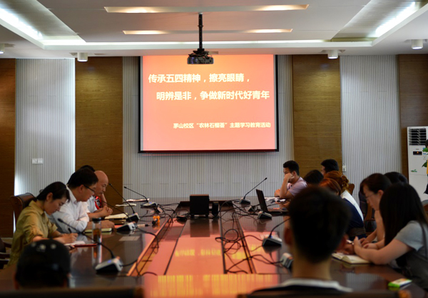 5月23日下午,茅山校区于图书馆会议室召开了“农林石榴荟”主题教育学习会议。来自经济与人文学院的教师和校区的40余名2018级新疆籍学生、辅导员、校区领导及新疆内派教师参加了此次会议。