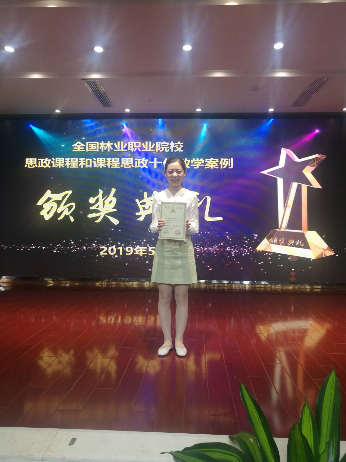 3月底以来,丁老师根据国家林业和草原局职业教育研究中心、中国林业教育学会职业教育分会《关于开展思政课程和课程思政“十佳教学案例”推选活动的通知》(林职教〔2019〕3号)的要求,认真总结、细致提炼、精心准备,及时提交了案例作品,经相关院校遴选推荐、组委会审核、专家评选、主管部门审定等程序,获得上述殊荣。据悉,本年度共评选出全国林业职业院校思政课程“十佳教学案例”10个、课程思政“十佳教学案例”10个。