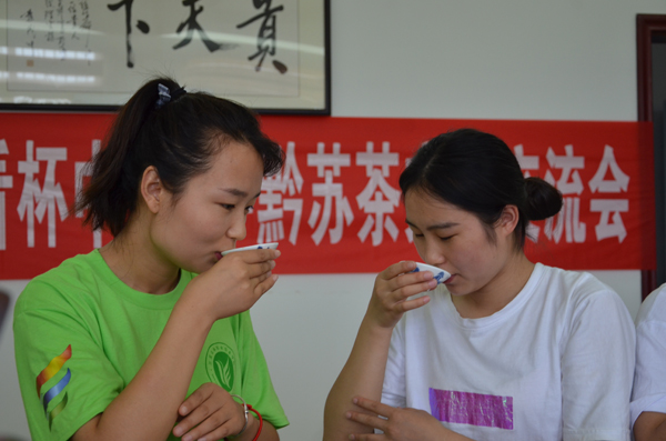 7月15日—18日,暑期实践团的师生来到惠水县长岩村开启了采茶、制茶体验之旅。志愿者在当地茶农的带领下,走过弯曲小路,来到茶园,只见采茶农身着苗族服装、唱着山歌,迎接远方来的客人,我们的志愿者很快融入了采茶体验中。采茶后,志愿者们走进了贵州黔色国香茶业发展有限公司,在当地制茶老师傅的带领下完成了红茶制作,后又走进贵定县鸟王村庭院式茶厂雷师傅家,分别在当地茶农和苏州洞庭山碧螺春茶业有限公司手工制茶大师的指导下完成了绿茶制作,在这里,江苏茶走进贵州,来了一场苏茶与黔茶的邂逅。