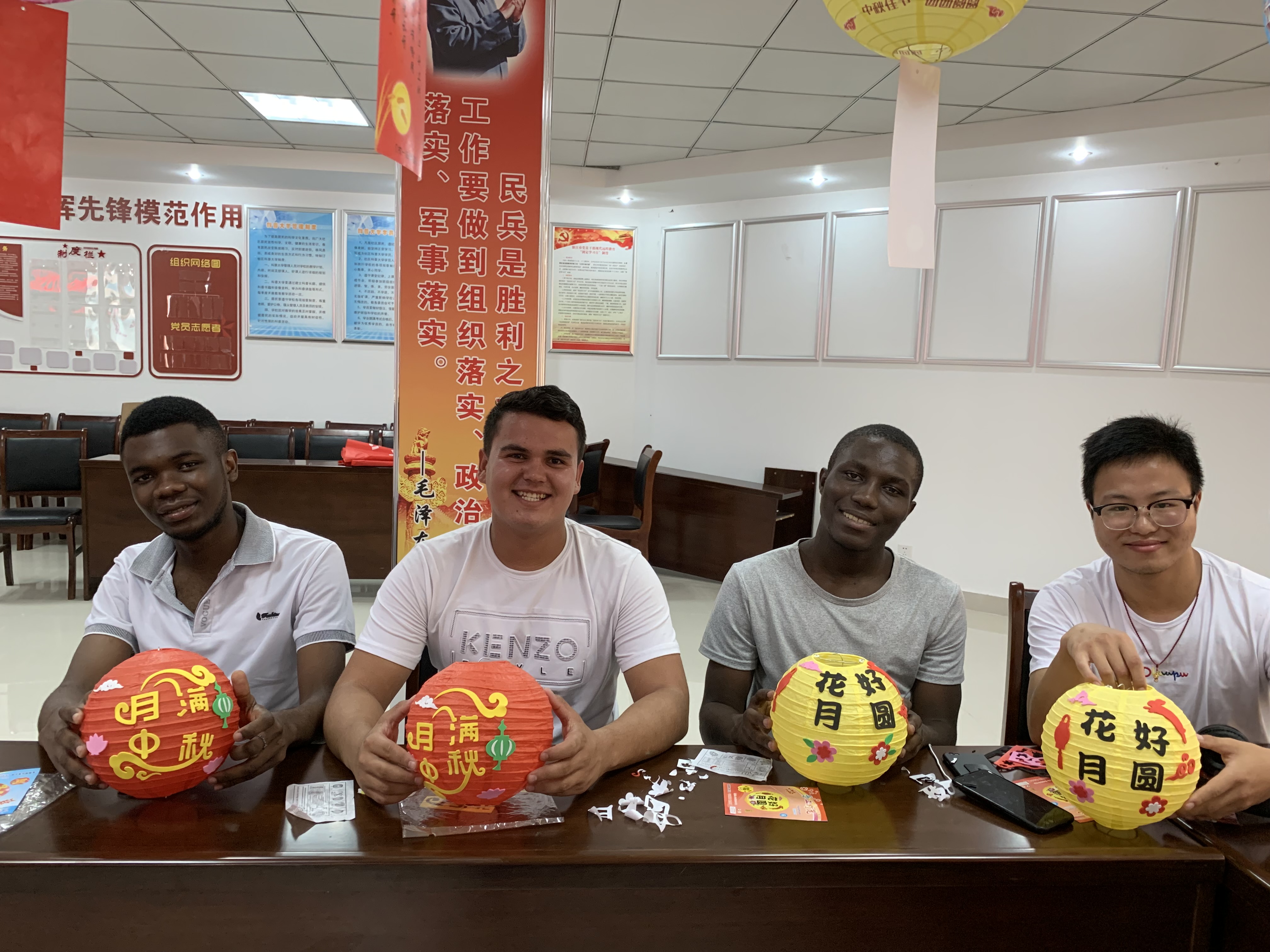 9月11日下午,机电工程学院志愿者陪同来华留学生们,赴句容市崇明街道河滨社区开展“庆祝新中国成立70周年-海外留学生感受中国文化”活动。国际教育学院郭俊副书记(主持工作)、机电工程学院党总支李杨副书记受邀参加,和同学们一起共度佳节。社区居民和志愿者给留学生讲解了中秋赏花灯的由来,让留学生了解中国的传统文化。贴彩片、安装彩色灯、许下心愿。志愿者与留学生共同制作花灯,一盏盏漂亮的“嫦娥奔月”“月兔欢跑”小花灯在大家的巧手下诞生。捏面团,包馅料,收口,揉圆,压模……,在DIY月饼制作过程中,大家以传统美食为话题,聊起生活点滴,分享国内外的不同传统文化。最后,在志愿者的带领下,同学们将做好的月饼送给社区的空巢老人,大家一起吃月饼、赏花灯、猜灯谜,提前欢度中秋佳节。9月12日,机电工程学院还在现代农业装备中心举办新入院留学生见面会。精心安排了中国传统文化介绍、月饼分享等环节,让大家感受到了异国他乡的浓浓情意。留学生也献上了精心编排的舞蹈,将活动氛围推向了高潮。