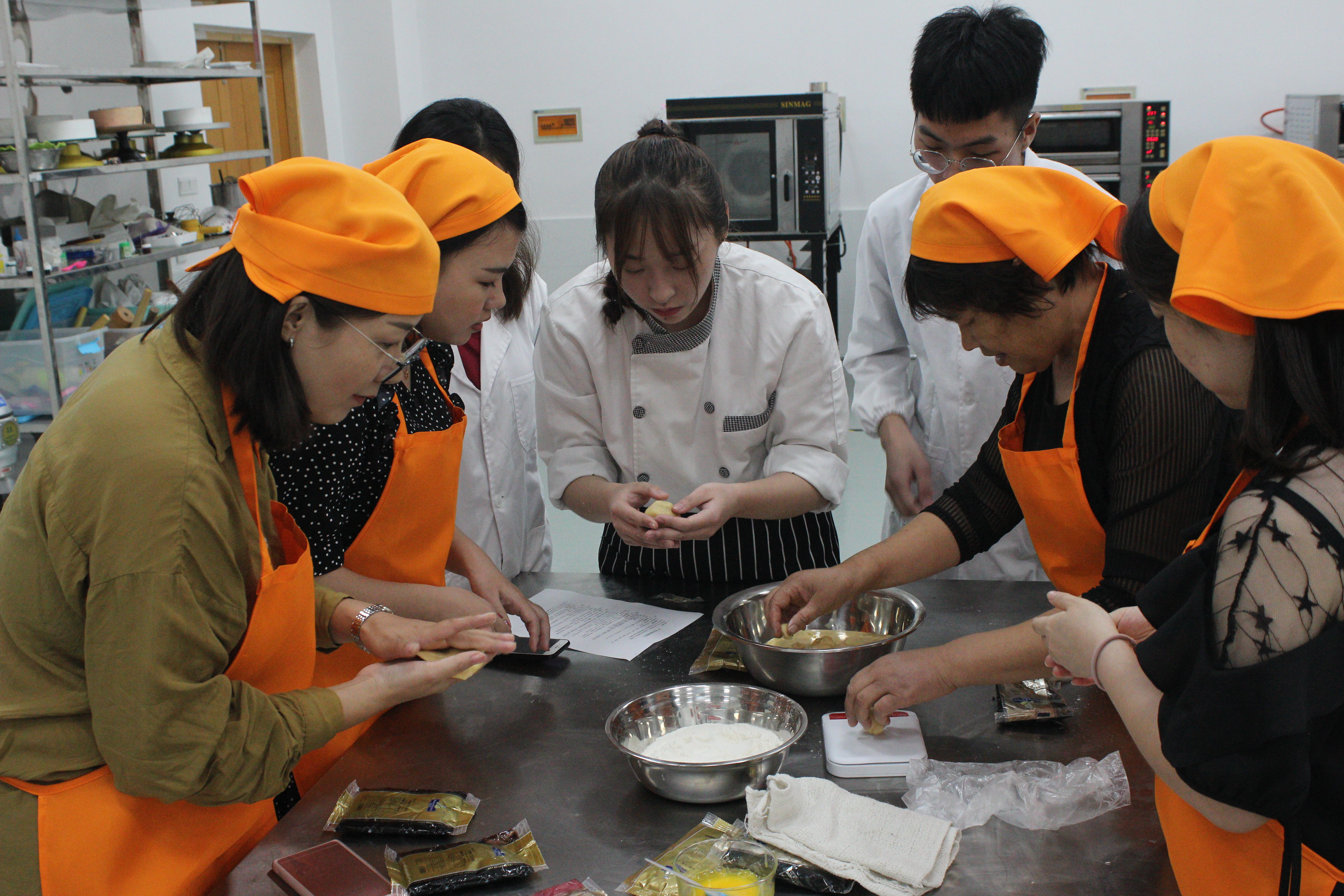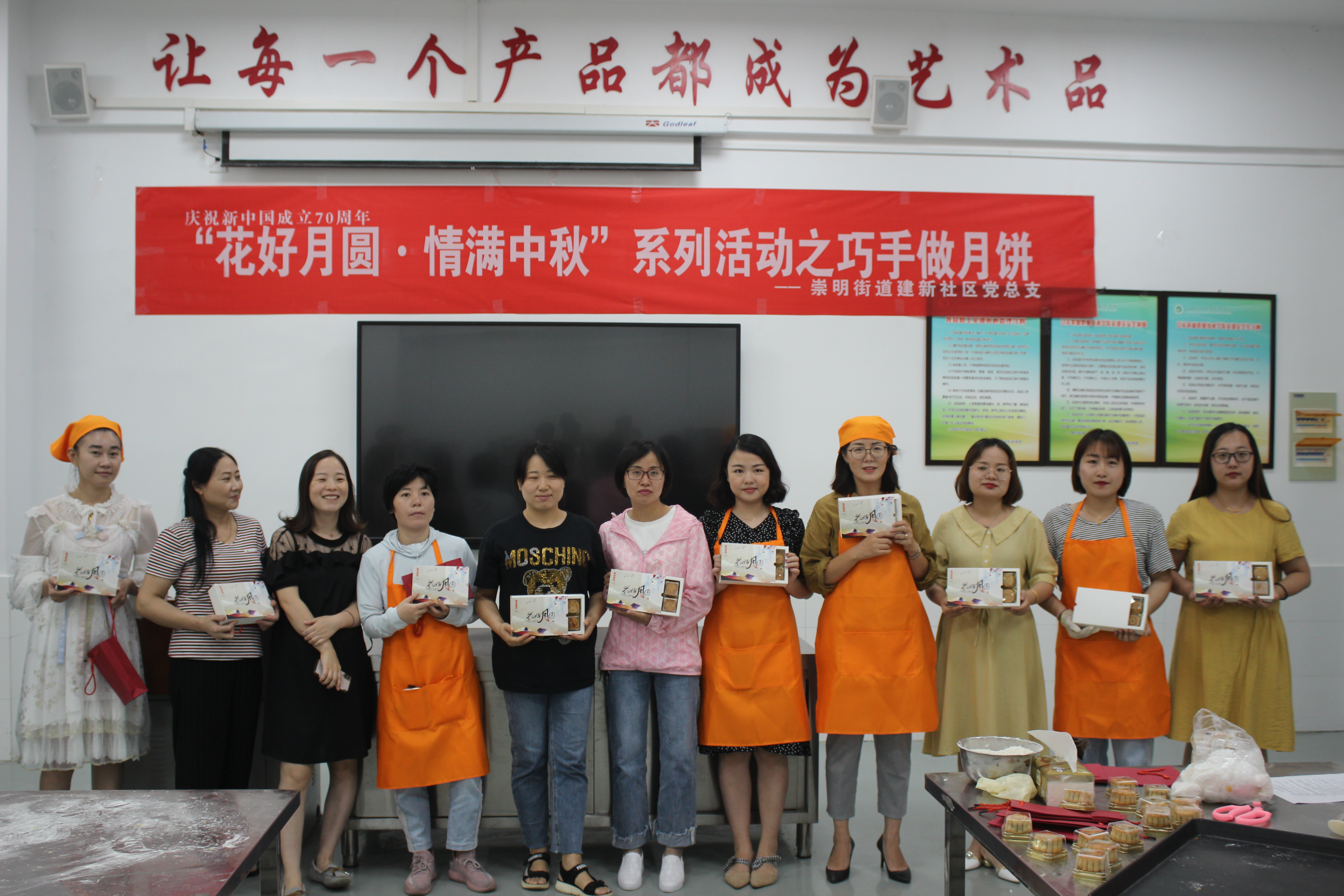 茶与食品科技学院联合建新社区9月11日在实验楼S101开展了“花好月圆·情满中秋”主题活动。特邀社区王仁芳、冯庆梅两位老党员为学生积极分子、发展对象讲述中秋文化的演变与传承。随后,社区党员在食品专业师生的带领下一起体验月饼制作。在大家共同协作的努力下,图样不一的月饼呈现在面前,通过烘烤包装后的月饼将在中秋期间发放到社区居民手中。大家既学习了传统文化,也享受了节日喜悦。