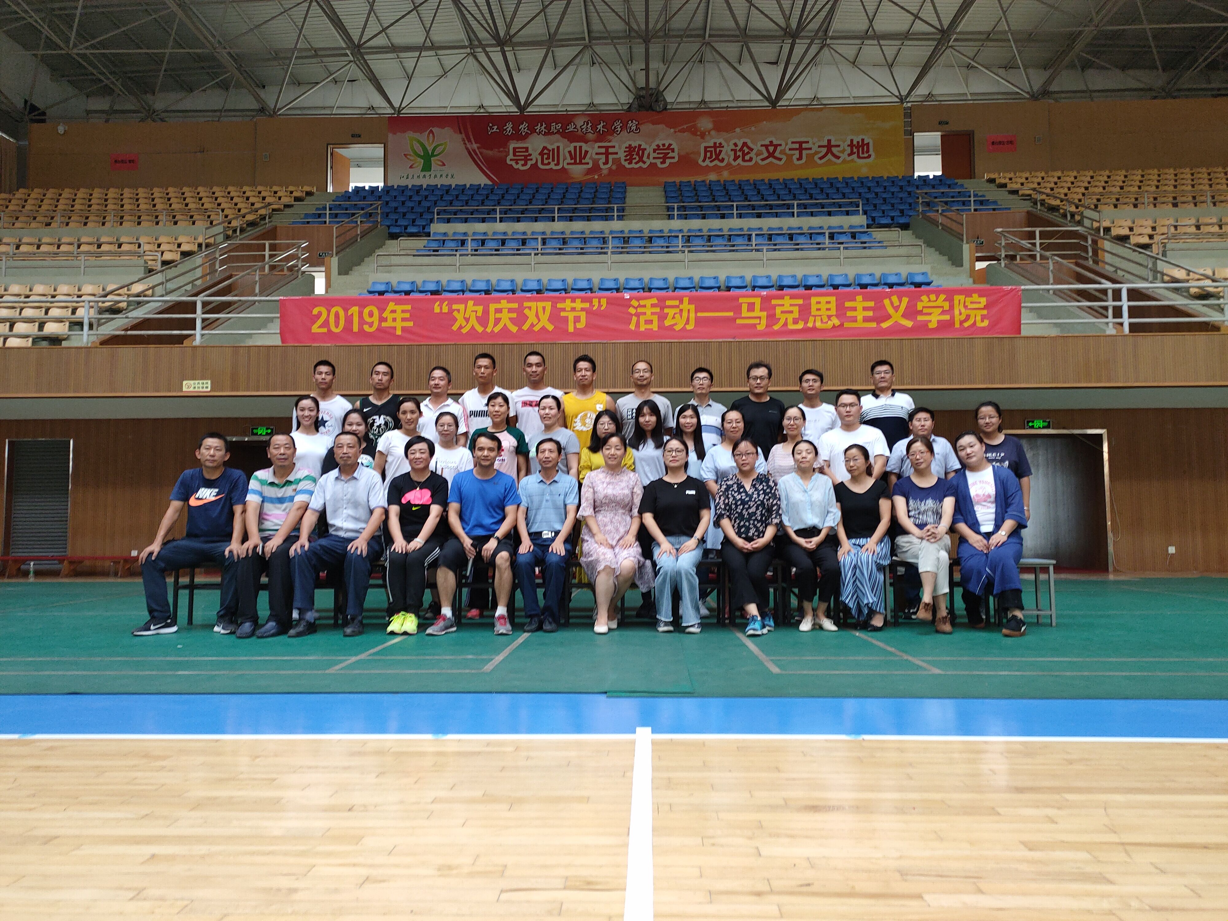 9月11日下午,马克思主义学院在体育馆二楼举办了“2019年欢庆双节”活动。学院工会主席高大响同志做了主题发言,为每位教职工送上双节祝福。2019年新进教师的带来了精彩的开场表演,体育部陈子桐、李道昌一段激情澎湃的舞蹈表演,史远洋老师的武术表演刚劲有力;思政部5位老师合唱歌曲《我爱你中国》。“一传到底”、“百发百中”、两人一组进行“涉水过河”游戏让各位老师增进了了解,增强了归属感和凝聚力。