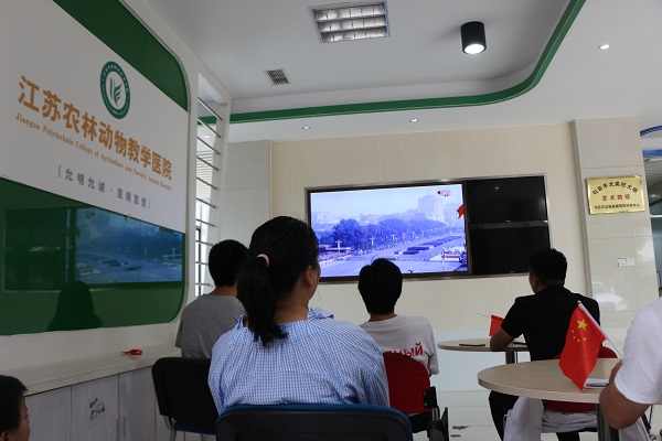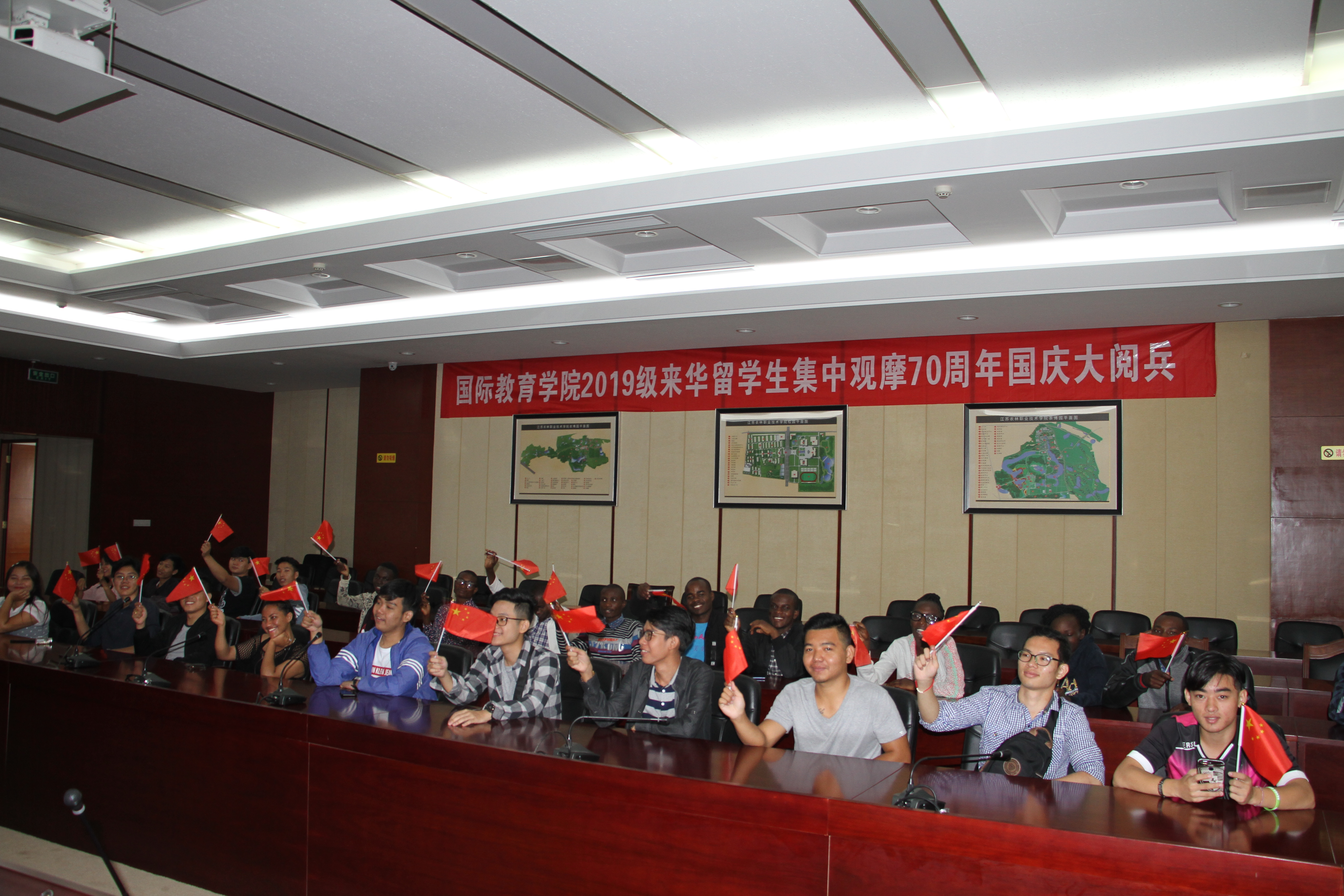 10月1日上午,畜牧兽医学院师生集中在多功能会议室、国际教育学院来自肯尼亚、埃塞俄比亚、老挝、缅甸等国的全体19级来华留学生在综合楼九楼会议室共同观看了庆祝中华人民共和国成立70周年阅兵式。在场师生手持中国国旗,一边观看电视直播等待阅兵仪式开始,一边交换着彼此激动的心情。当来华留学生们看到电视屏幕中中国盛大的国庆阅兵式、世界先进的武器装备时,现场不时传来惊叹和欢呼声,中国的强大让他们竖起了佩服的大拇指,也让身处FUN乐天使官方网站、身在中国的他们倍感荣耀,他们也纷纷表示一定要在我校好好学习,回国后传播好中国声音,讲好中国故事,发挥好文化传播的桥梁作用。