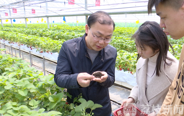 基质栽培技术要求高,不同生长期的草莓,营养元素都需要精准提供,每次遇到问题,纪荣喜就想到了王老师。