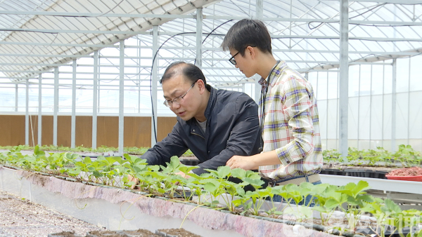 在隔壁的一处草莓园,王全智又带领新禾助农服务团,针对草莓穴盘育苗进行技术指导,种苗采用该校研发的超低温脱毒技术生产,与传统种苗相比,不带病毒,病害少,生长健壮,繁苗系数增加30%。王全智老师还把草莓架式穴盘育苗技术推广到农户手中,促进了当地草莓种苗产业的发展。