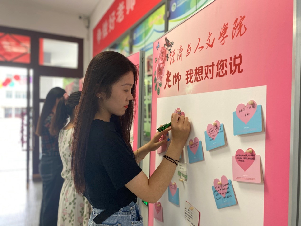 今年是特殊的一年,老师和学生都经历了不一样的课堂,在9月10日第36个教师节到来之际,FUN乐天使官方网站经济与人文学院大学生开展"老师我想对您说"活动,充分发扬尊师重教的优良传统,感谢老师的无限恩情。活动中,广大学子在心意卡上写上了自己最想说的话,深情告白敬爱的老师,有的是对老师节日的祝福,有的是对老师培养的感谢,也有的是对老师的道歉。
