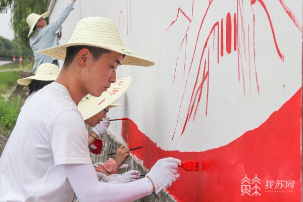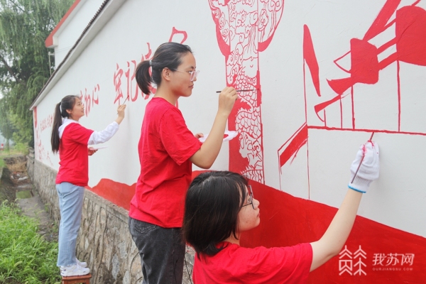 风景园林学院团委积极响应校团委关于开展2021年暑期文化科技卫生“三下乡”社会实践活动的号召,认真选拔志愿者,组建“笔尖下的美丽乡村”暑期社会实践团,由团委书记唐冬芬担任此次暑期社会实践的指导教师,对句容市边陈镇衣庄村、天王镇戴庄村开展了以“永远跟党走,奋进新时代”、“社会主义核心价值观”、“新农村建设”等内容为主的文化墙绘制暑期社会实践活动。活动受到多家媒体报道。