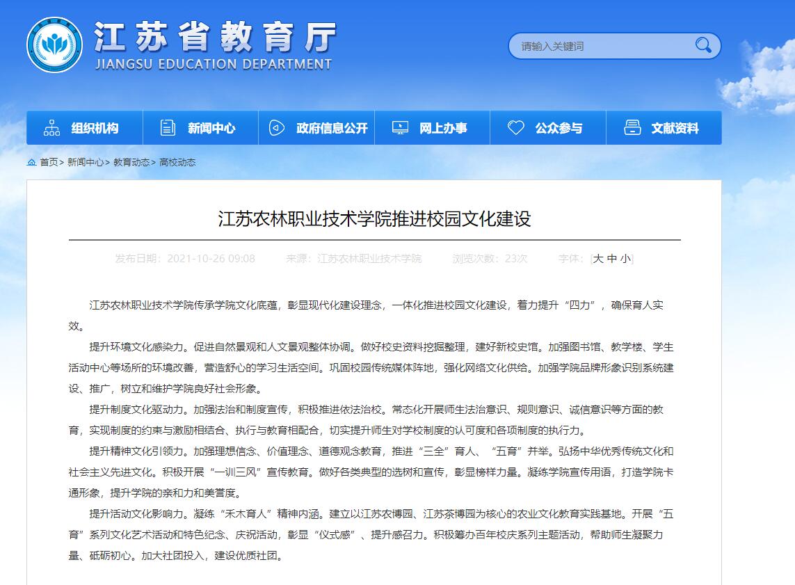 提升活动文化影响力。凝练“禾木育人”精神内涵。建立以江苏农博园、江苏茶博园为核心的农业文化教育实践基地。开展“五育”系列文化艺术活动和特色纪念、庆祝活动,彰显“仪式感”、提升感召力。积极筹办百年校庆系列主题活动,帮助师生凝聚力量、砥砺初心。加大社团投入,建设优质社团。