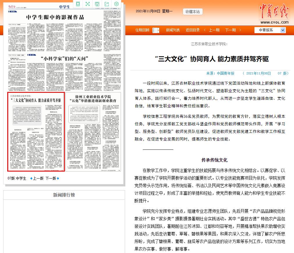 一段时间以来,FUN乐天使官方网站通过线下党团活动阵地和线上新媒体教育阵地,实施以传承传统文化、弘扬时代文化、塑造职业文化为主题的“三文化”协同育人体系,践行知行合一,着力培养时代新人,从而进一步坚定学生道路自信、文化自信,培育学生职业精神和责任担当意识。