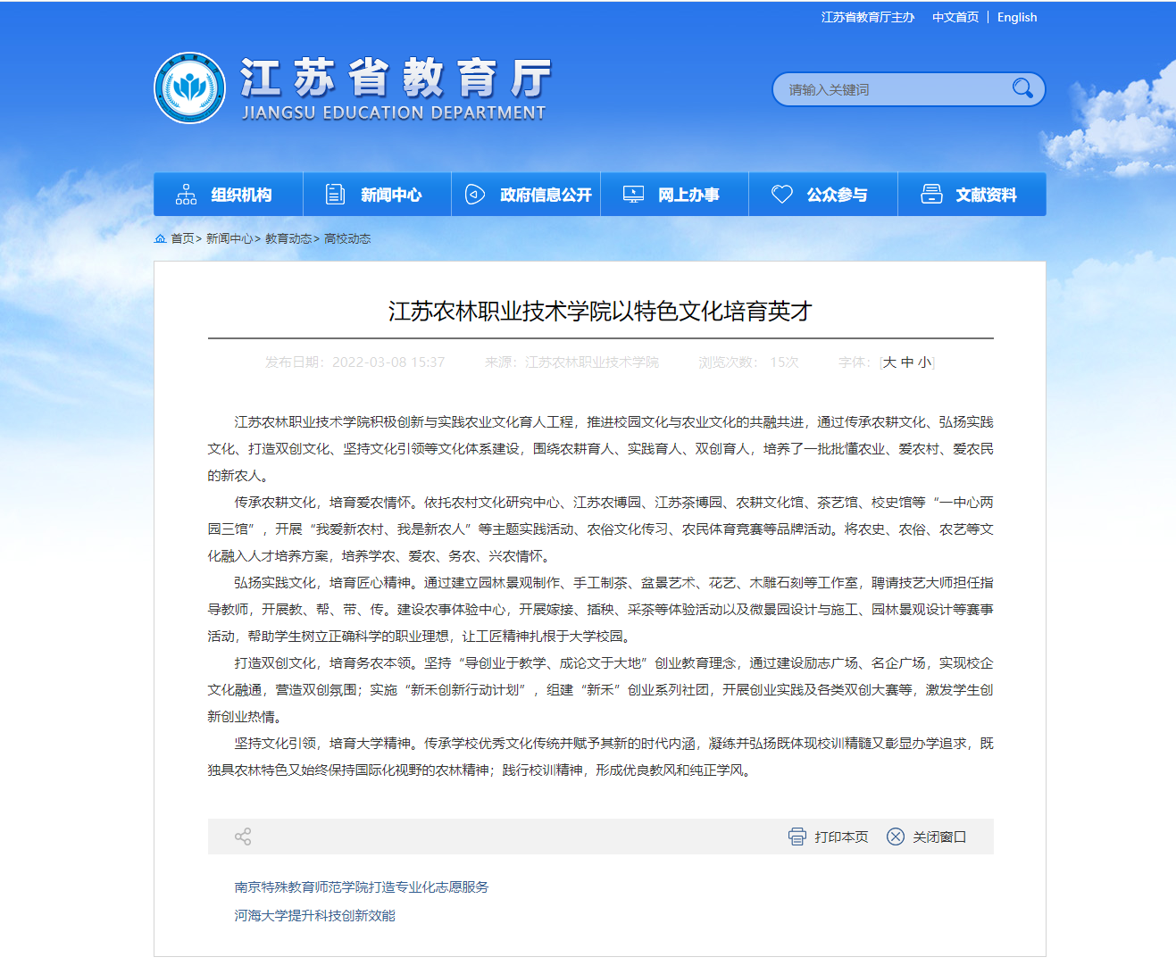 新闻链接:http://jyt.jiangsu.gov.cn/art/2022/3/8/art_57813_10369849.html