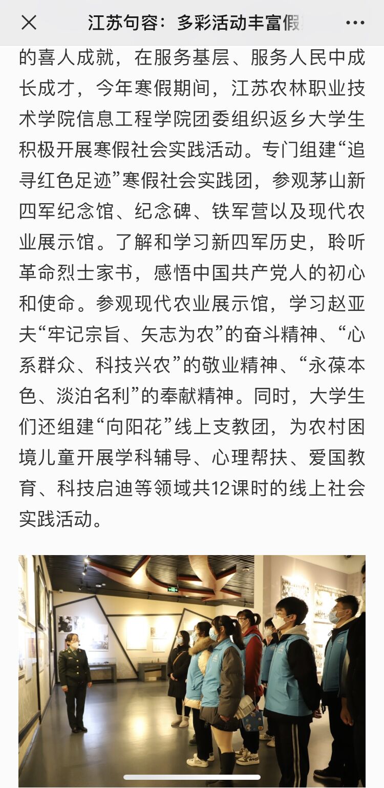 截止目前,信息工程学院已有46支寒假社会实践团队在家乡或假期常住地开展社会实践活动,青年学生深入农村、社区,不负家乡父老的厚望期待,在教育关爱、科技支农、基层社会治理等领域贡献青春力量。