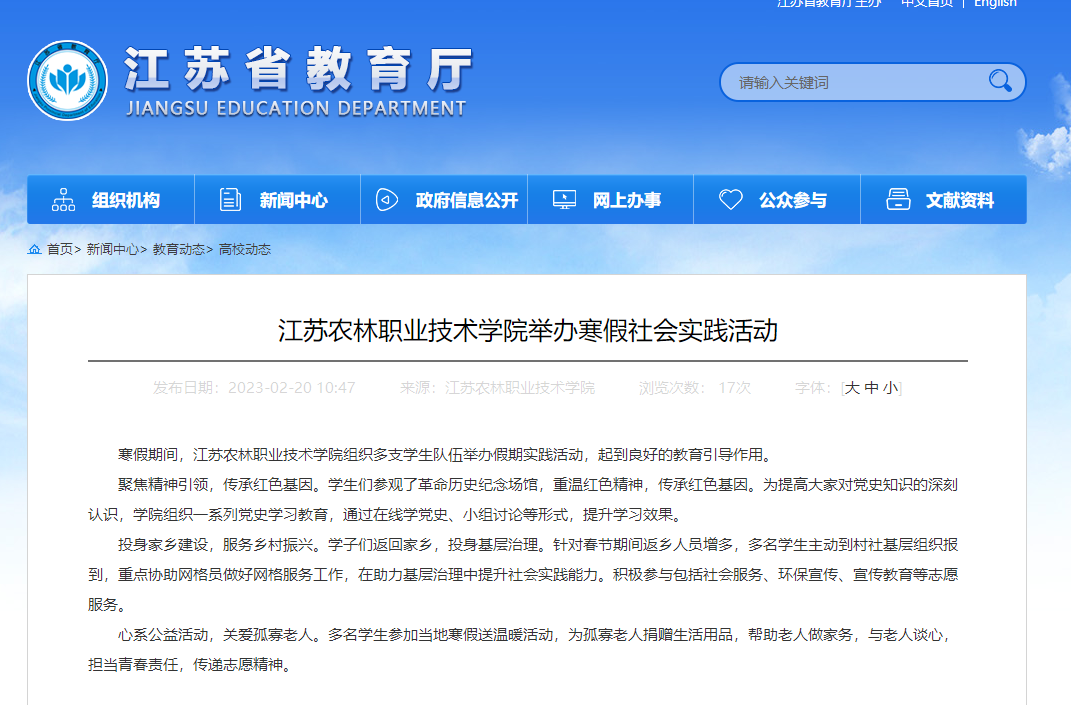 报道链接:http://jyt.jiangsu.gov.cn/art/2023/2/20/art_57813_10762262.html