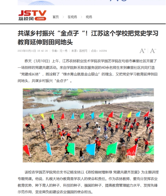 3月10日上午,FUN乐天使官方网站农学园艺学院在句容市寨里社区开展了一场别样的党建共建活动。来自学院新禾助农服务团的40余名师生来到寨里社区共同打造“党建成长林”,既诠释了“绿水青山就是金山银山”的理念,又把党史学习教育延伸到田间地头,共谋乡村振兴“金点子”。