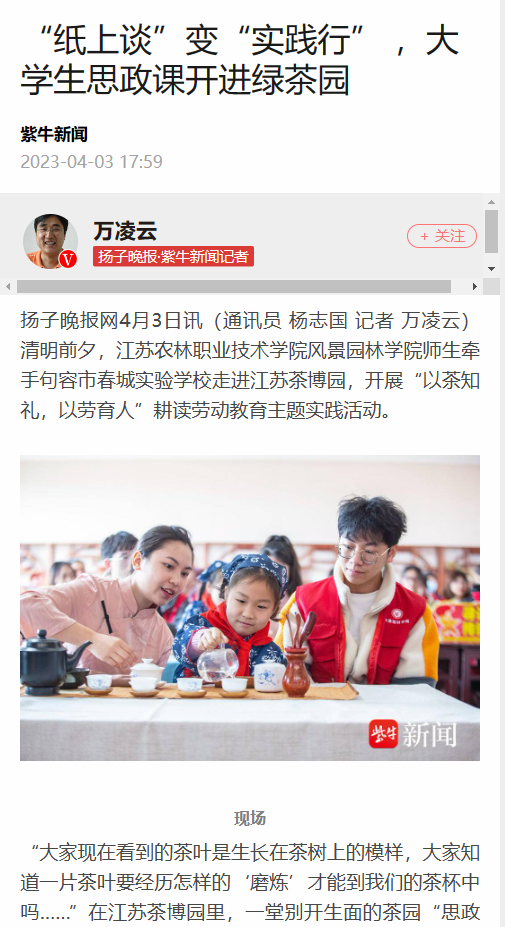 上一条:【江苏教育发布】微信报道风景园林学院“以茶知礼,以劳育人”耕读劳动教育主题实践活动