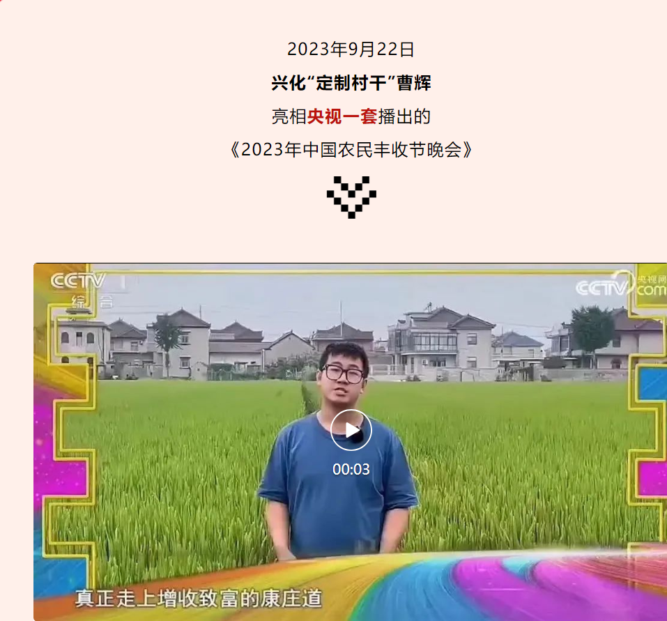 FUN官网优秀毕业生——兴化“定制村干”曹辉亮相央视一套。