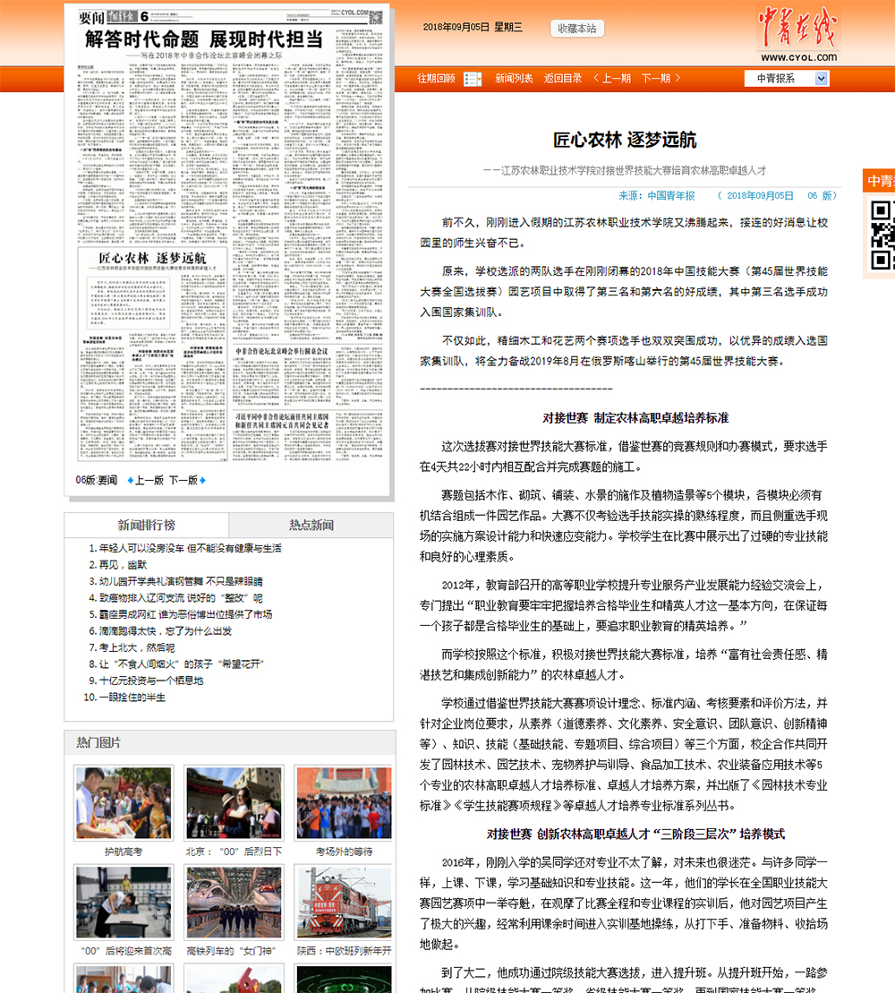 原来,学校选派的两队选手在刚刚闭幕的2018年中国技能大赛(第45届世界技能大赛全国选拔赛)园艺项目中取得了第三名和第六名的好成绩,其中第三名选手成功入围国家集训队。
