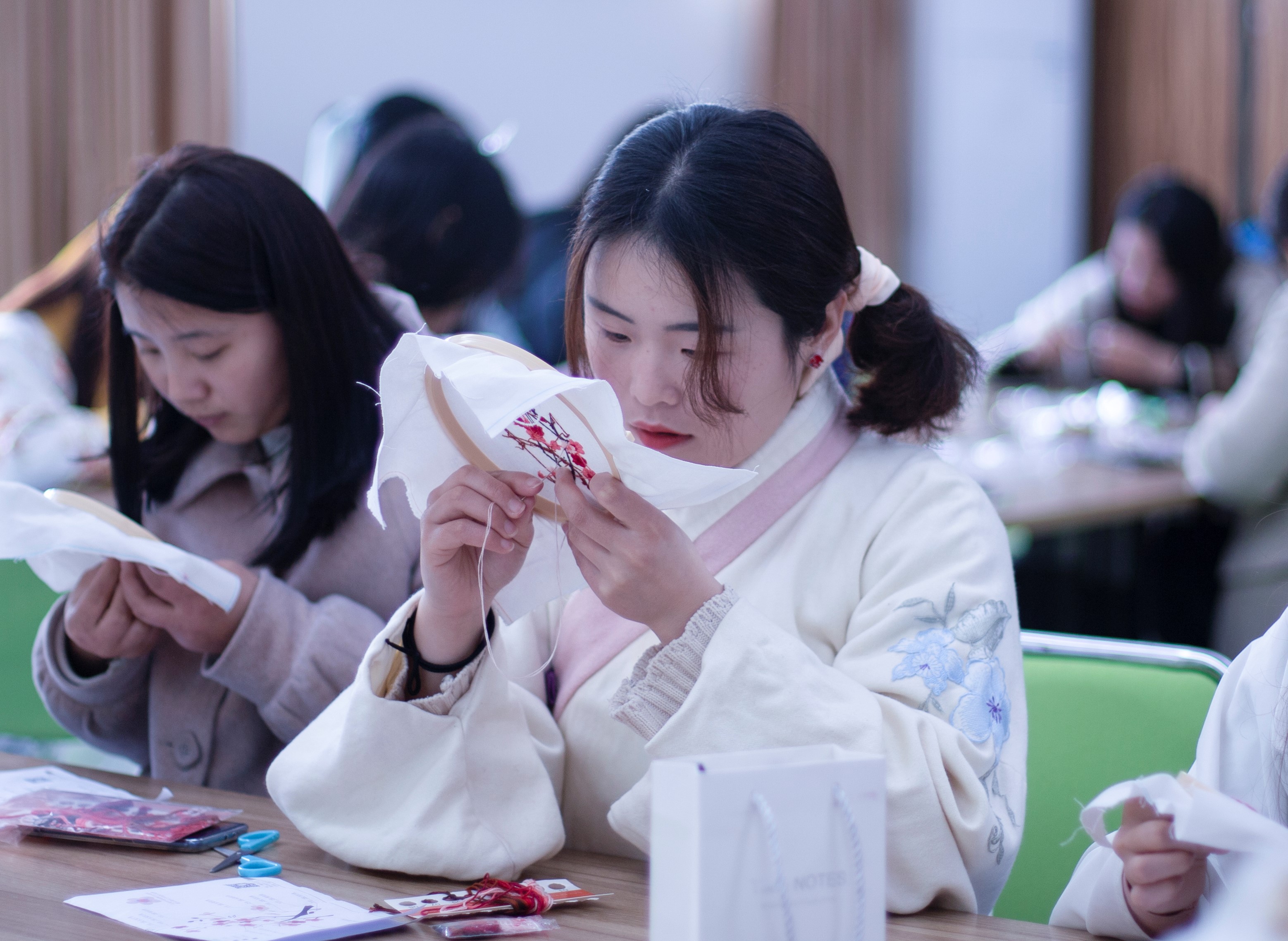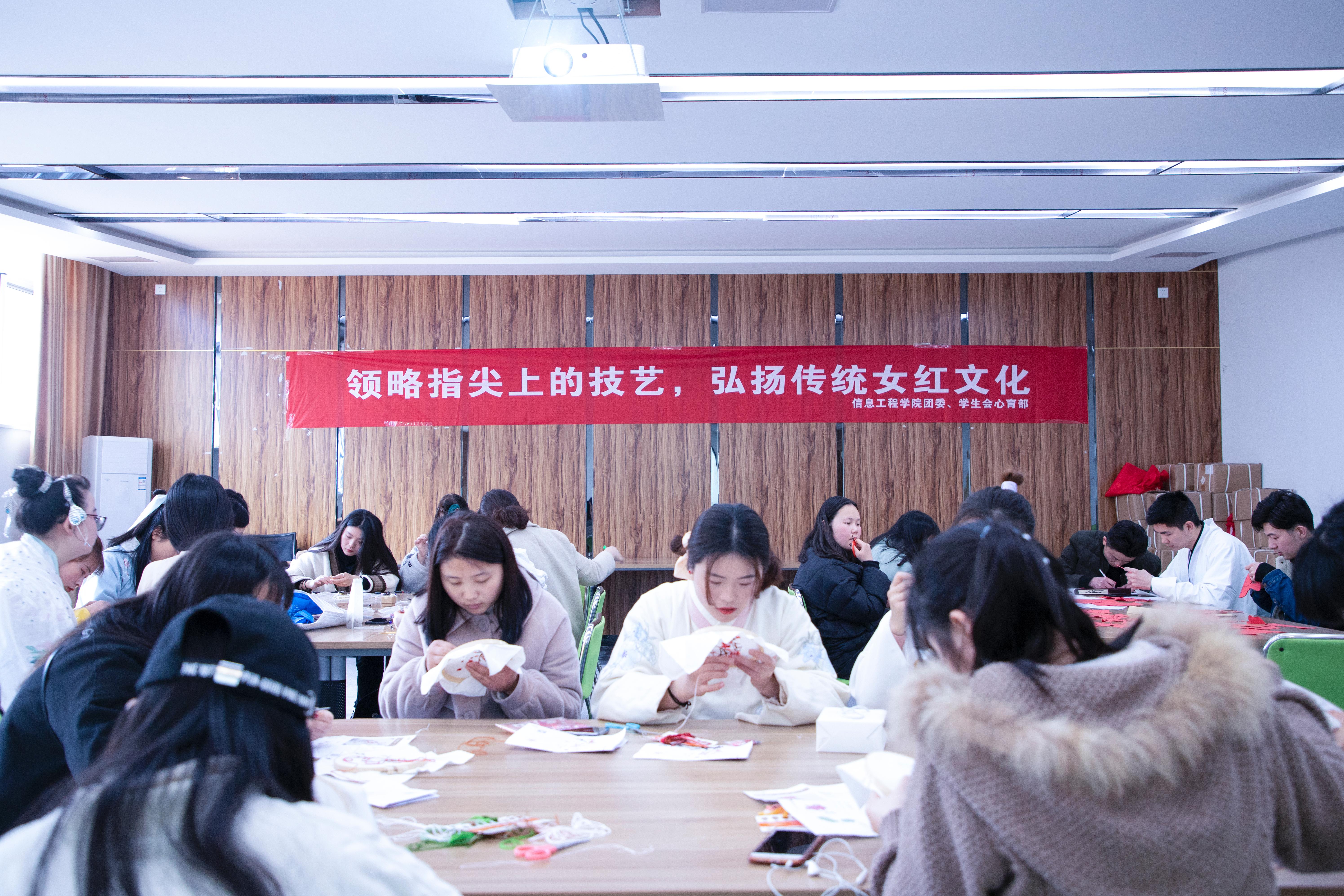 “十指春风话女红”。在三八妇女节来临之际,3月6日14:00,信息工程学院团委心育部在创客空间105开展传统女红文化体验活动。女生们身着汉服,做起了刺绣、手工制作发簪、剪纸等女红,以这种传统文化的方式迎接三八妇女节。