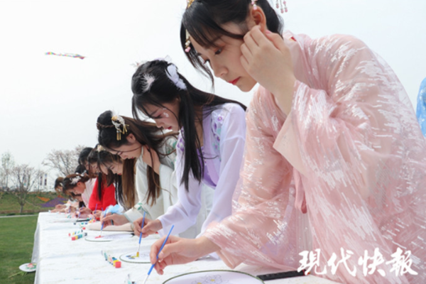 3月23日上午,一场别开生面的古代民间传统 " 花朝节 " 在句容市白兔镇伏热花海庄园热闹上演,不少年轻人纷纷身穿汉服相约而来,经济与人文学院16旅游管理班胡翩翩同学与另外11位"“花神”一起体验穿越时空、感受古时花朝节的盛况,为这个春天增添别样的风雅。